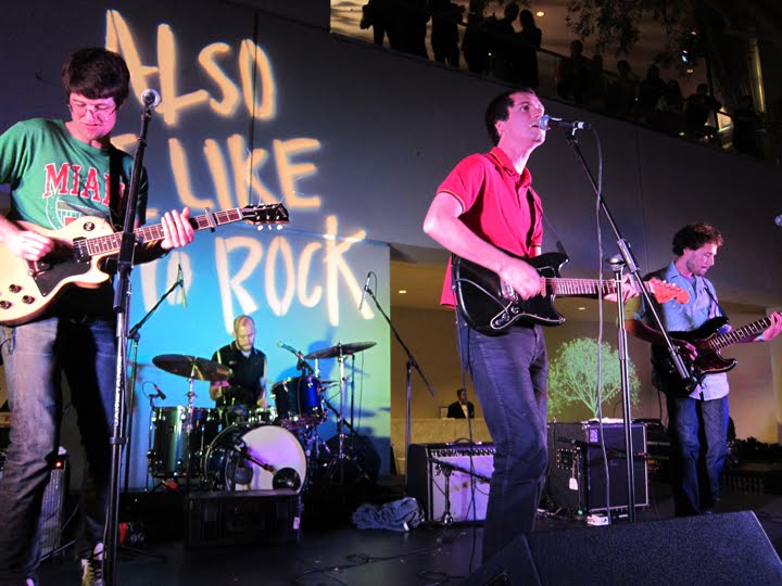It's become a summer tradition of ours to go to the Hammer Museum free concert series that happens every Thursday in July. The first one I ever went to was back in 2006 when Run Run Run and Silversun Pickups played. It's an awesome place and I absolutely love enjoying a summer night with good music in a nice UCLA museum in Westwood. Other bands I've seen here are Shiny Toy Guns, People in Planes, Deadly Syndrome, Band of Skulls, Amazing Baby, Miss Derringer, and more. As you can see, the lineup does not disappoint. This year, I was excited to see that The Soft Pack were playing. I hadn't seen them in such a long time it was kind of ridiculous. Hanni El Khatib went on first. It's just him with his guitar and a drummer. It was nice and loud and had a modernized soulful rock sound. Very nice indeed. Then, The Soft Pack played starting with "The Bright Side". It just made me dance. There were stanchions and velvet ropes that kind of stood in front of the stage. By the middle of the set, we were all pushed forward to the edge of the stage. Some people almost fell onto the stage. This guy in the crowd adjusted the moved monitor. But it was all good fun. The fans were happy and dancing. It's been a while since I've had this much fun. And I got the set list, it had some interesting stick figure drawings.